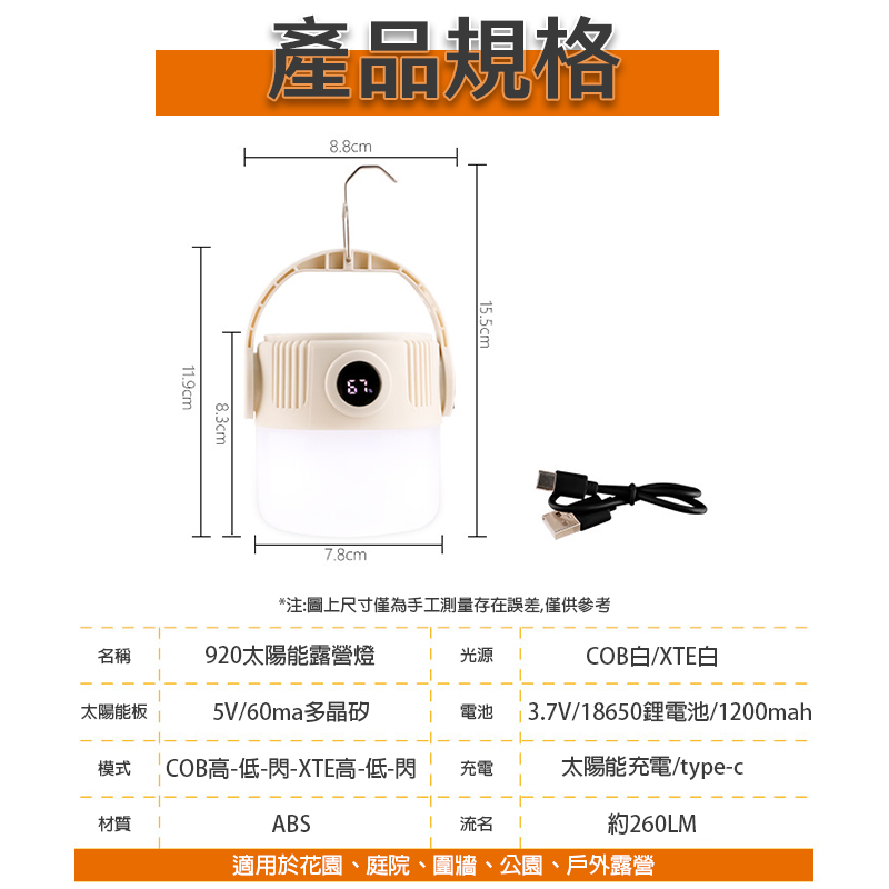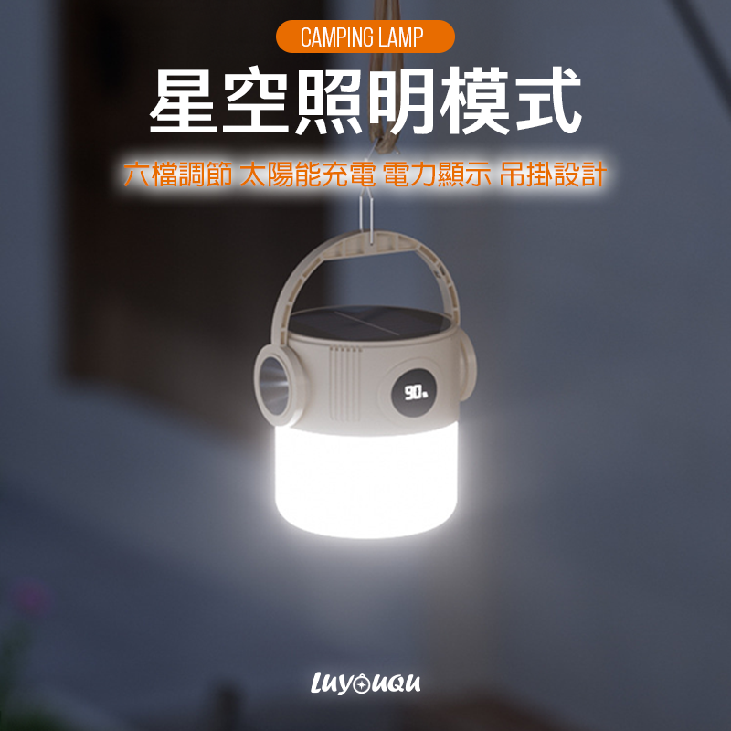 920太陽能露營燈 太陽能露營燈 探照+露營燈 六檔調節露營燈 電量顯示 太陽能充電 生活防水 戶外露營照明燈